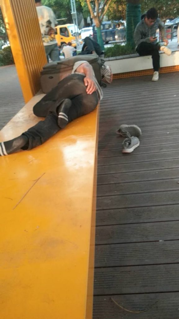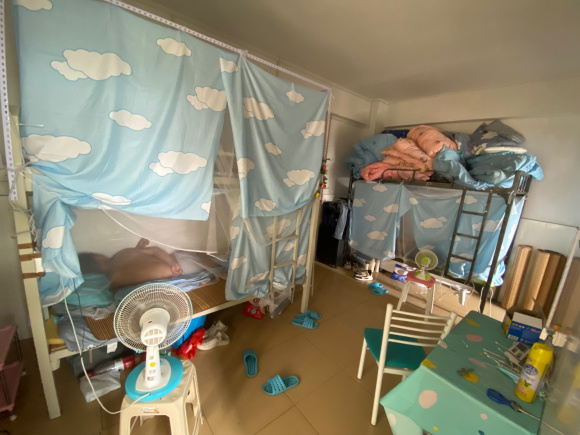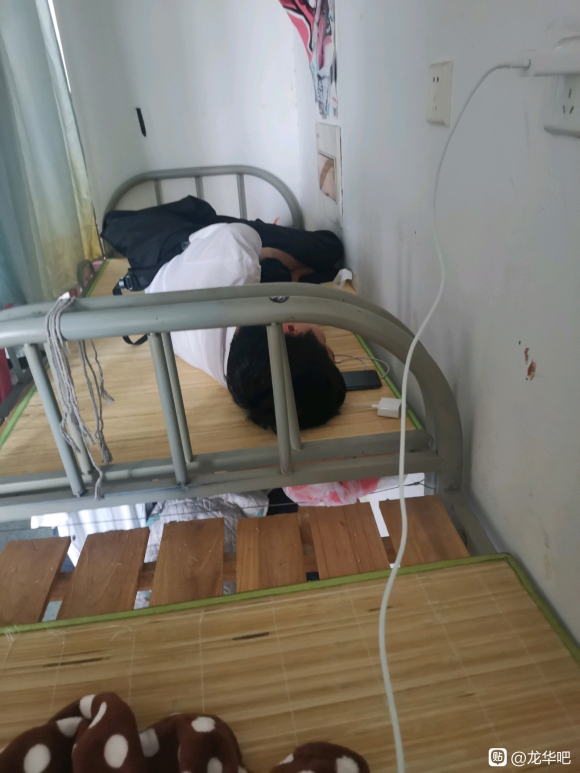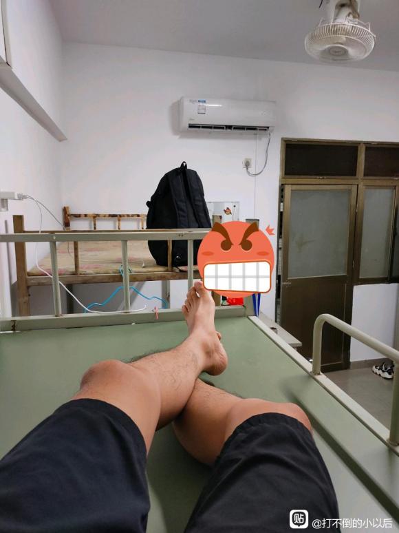 昨天晚上睡我隔壁床的老哥是真的大神!啥都没有,凉席还是别人留下的!晚上空调吹得瑟瑟发抖!不知道是怎么挺过来的!